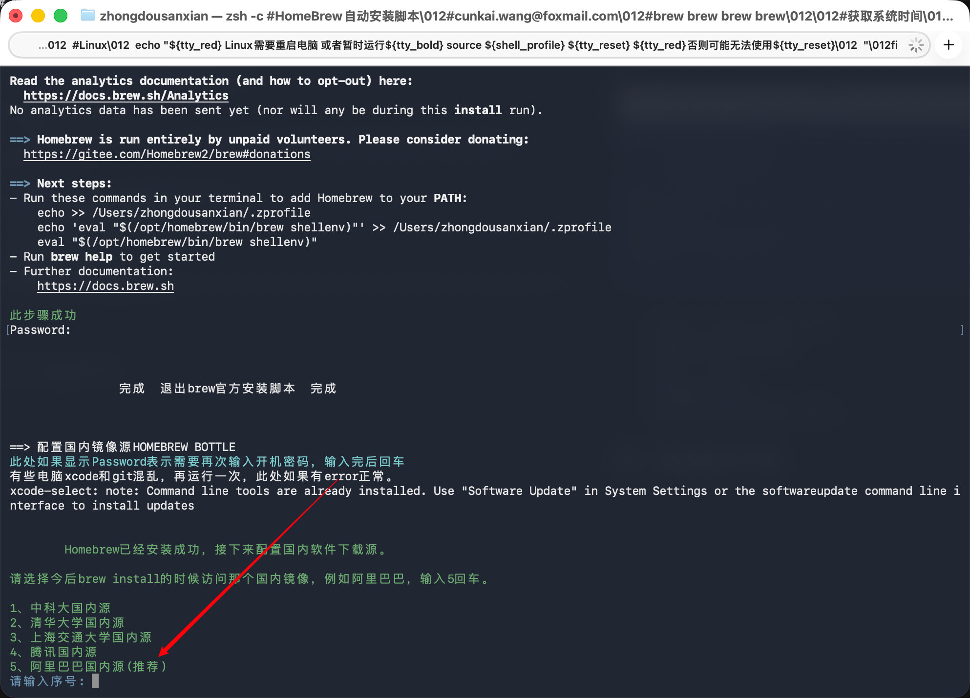 把生成的密钥,粘贴到终端中,回车,下一步保持默认即可:
