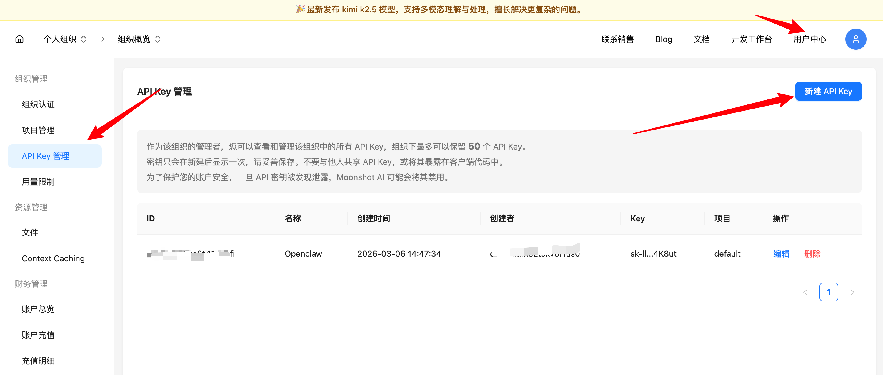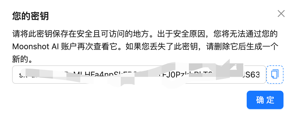 新建的时候,弹出您的密钥,立马复制保存下来,这个密钥只出现一次,否则只能再次新建: